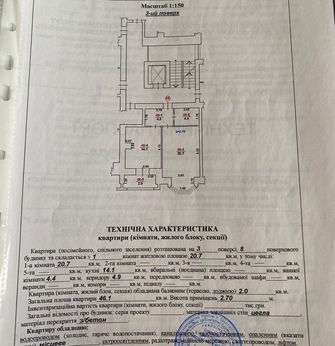 1 кімн. · 3/8 пов. · 46.10 м²