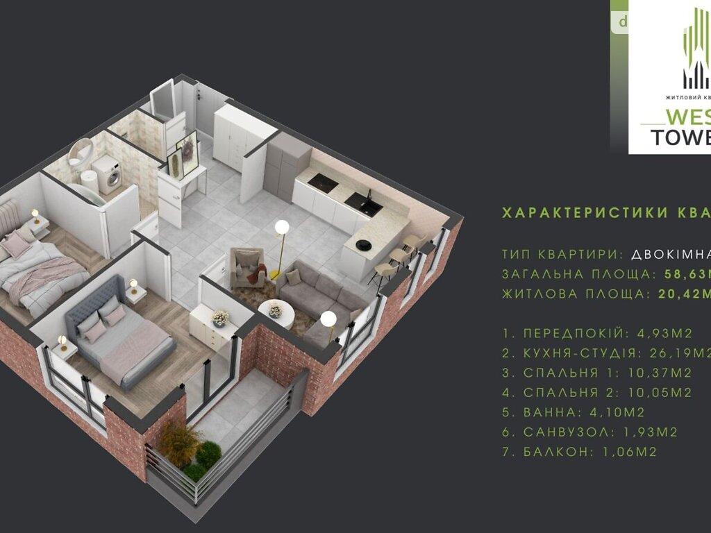 Пропоную квартиру 2-кімнатну в ЖК "West Towers"площею 58,63 м², район Новий, вул. Тлехаса (спальний район) в Ужгороді.