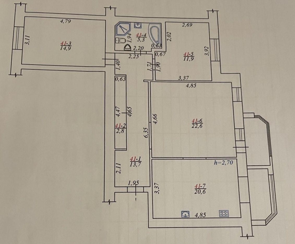 3 кімн. · 9/9 пов. · 95 м²