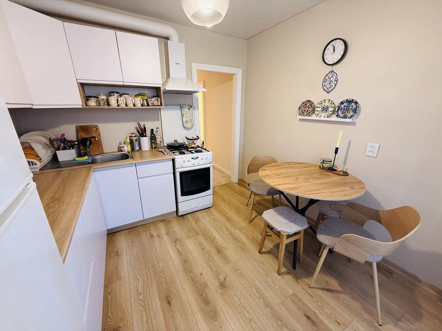 Кухня 8.30 м². Продається разом з гаражем на цокольному поверсі під квартирою.