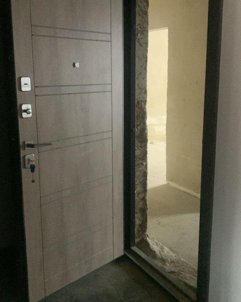 Площа квартири 66 кв. метрів, без внутрішніх ремонтних робіт. Квартира має нестандартне планування, житлову площу 34 м² та кухню 13 м².