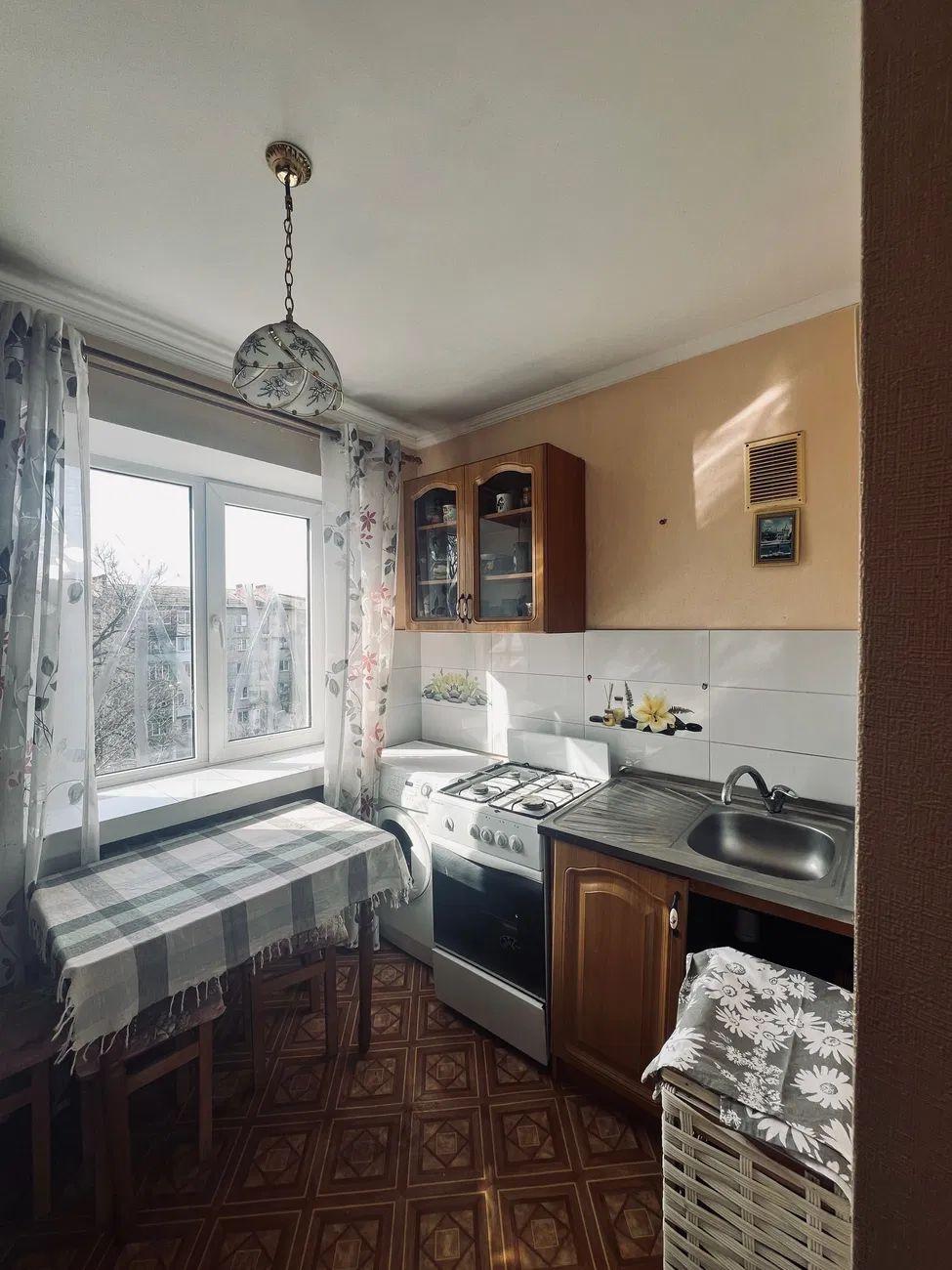 Цегляний будинок, поверх – 5/5, заг. площа – 50 м²., кухня – 6 м²., одна кімната прохідна.