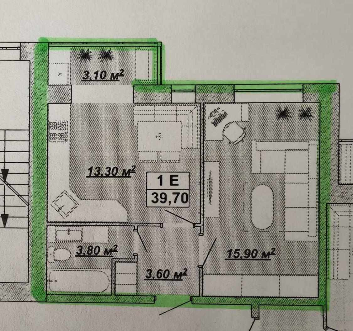 - Площа загальна, м²: 39.70