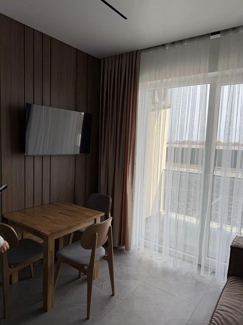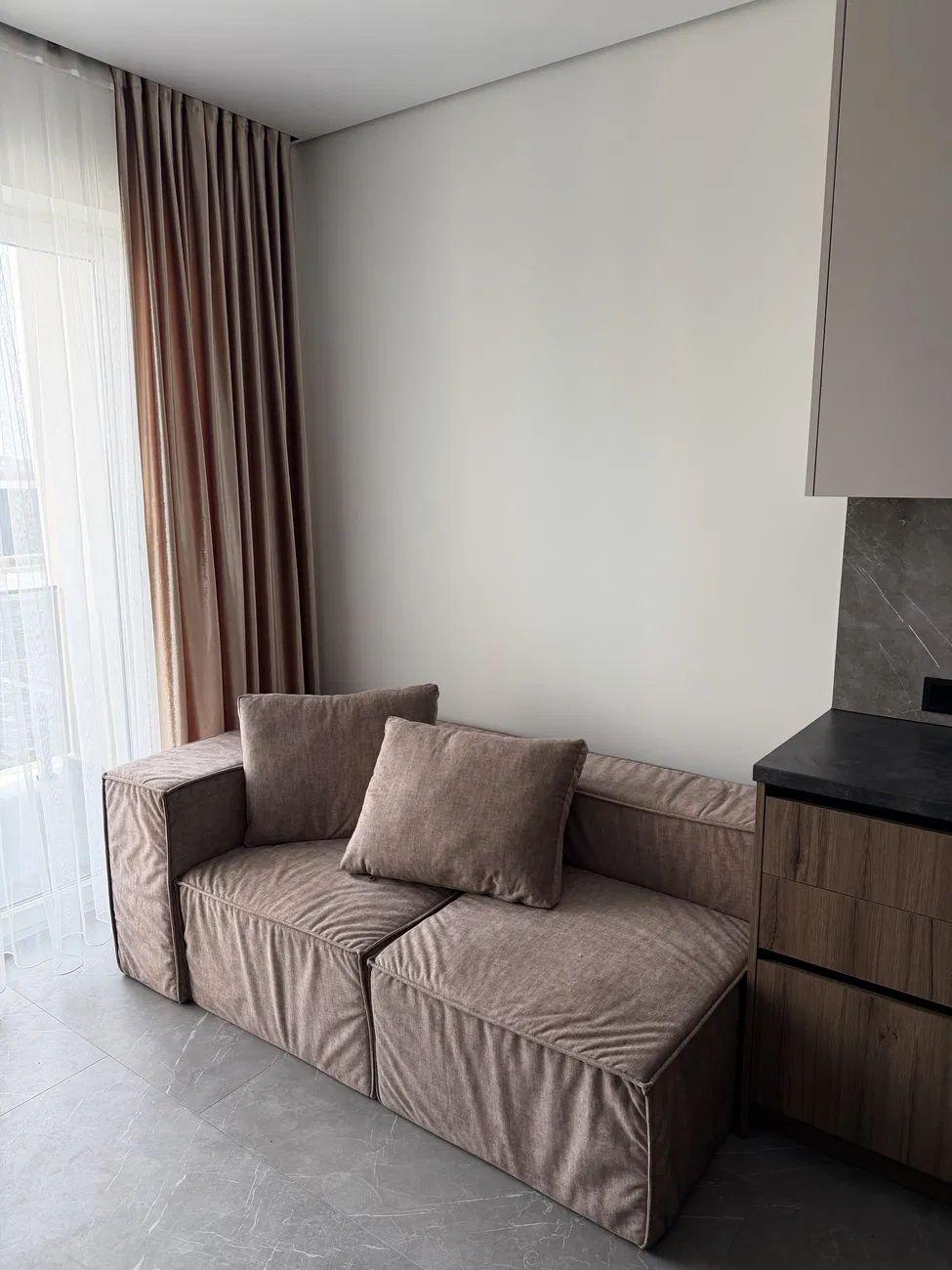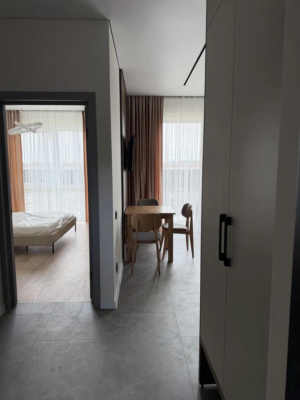 Продаж просторої однокімнатної квартири у кухнею студією. Вмонтовані меблі та техніка.По квартирі розведено теплу підлогу, встановлено кондиціонер.