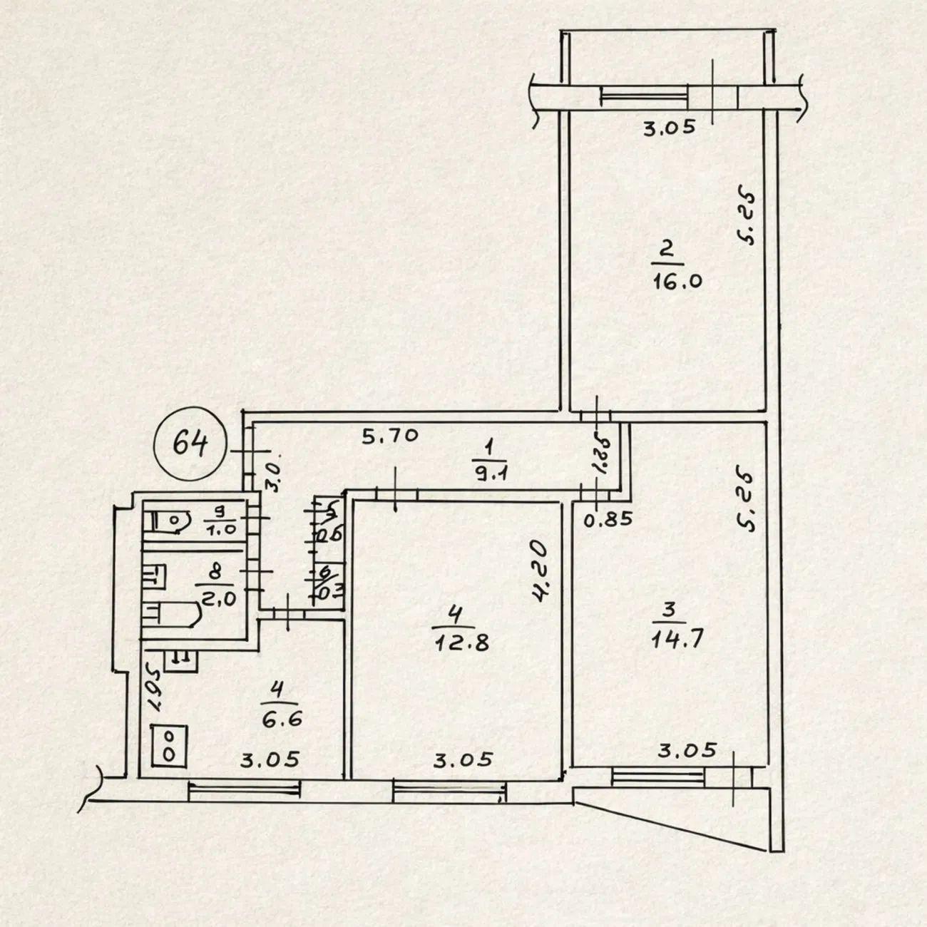 3 кімн. · 7/9 пов. · 64 м²