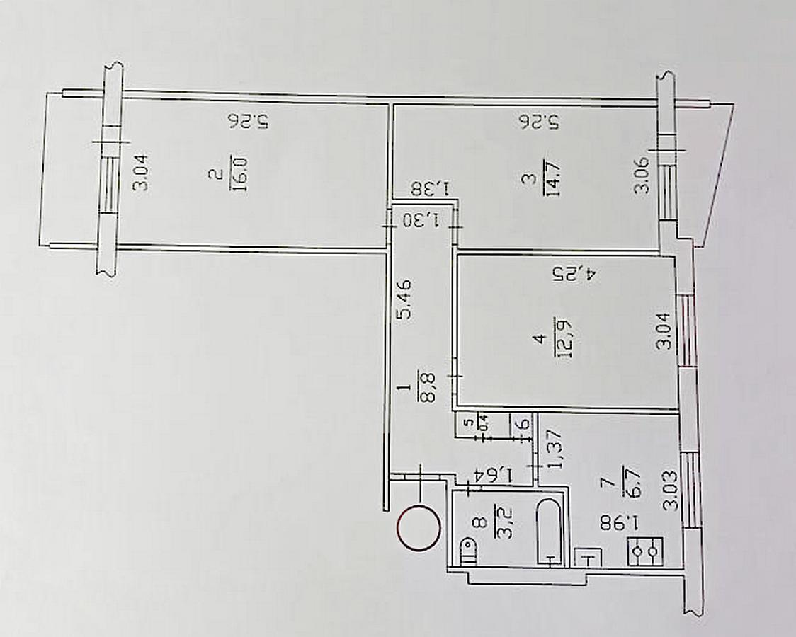 3 кімн. · 8/12 пов. · 64.40/42/6.70 м²