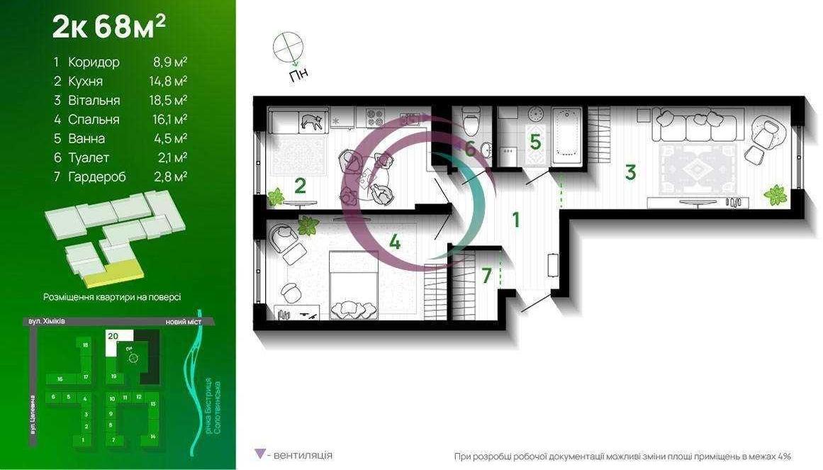 - Площа загальна, м²: 68