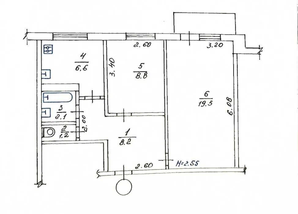 - Площа кухні, м²: 6.60