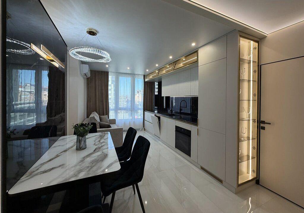 У квартирі сучасний ремонт, індивідуальне опалення, підігрів підлоги, багато підсвіток. Повністю укомплектована меблями та технікою: пральна та посудомийна машина, холодильник, 2 телевізори, 2 кондиціонери, духова шафа, варильна поверхня, бойлер.