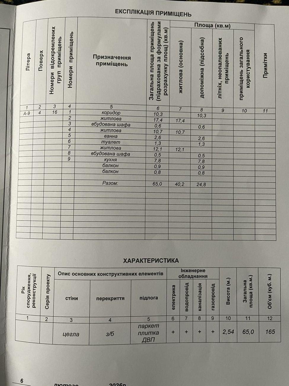 - Площа загальна, м²: 65