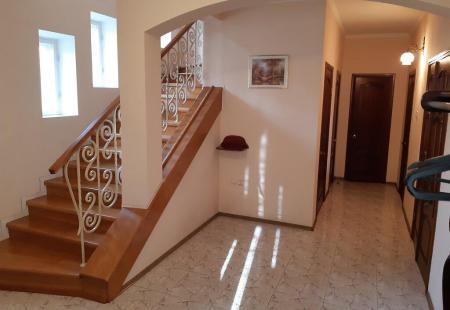 Поруч річка, пляжі, транспорт, магазини. Ділянка квадратна рівна піднята на 1 метр - 9 соток. У дворі покладено якісну плитку бордюри, вже є зелені насадження. Будинок на 2 поверхи + мансарда. На першому поверсі велика зала (50 м ²), кухня-студія (33 м ²), робочий кабінет, передпокій. На другому поверсі 6 кімнат. У спальні вітражні вікна, які виходять на монастир з одного боку та білу альтанку з іншого. У будинку потрібно доробити косметичні роботи. Є можливість зробити їх за індивідуальними бажаннями клієнта. Побудовано великий лазневий комплекс 160м² з житловим приміщенням та гаражем.