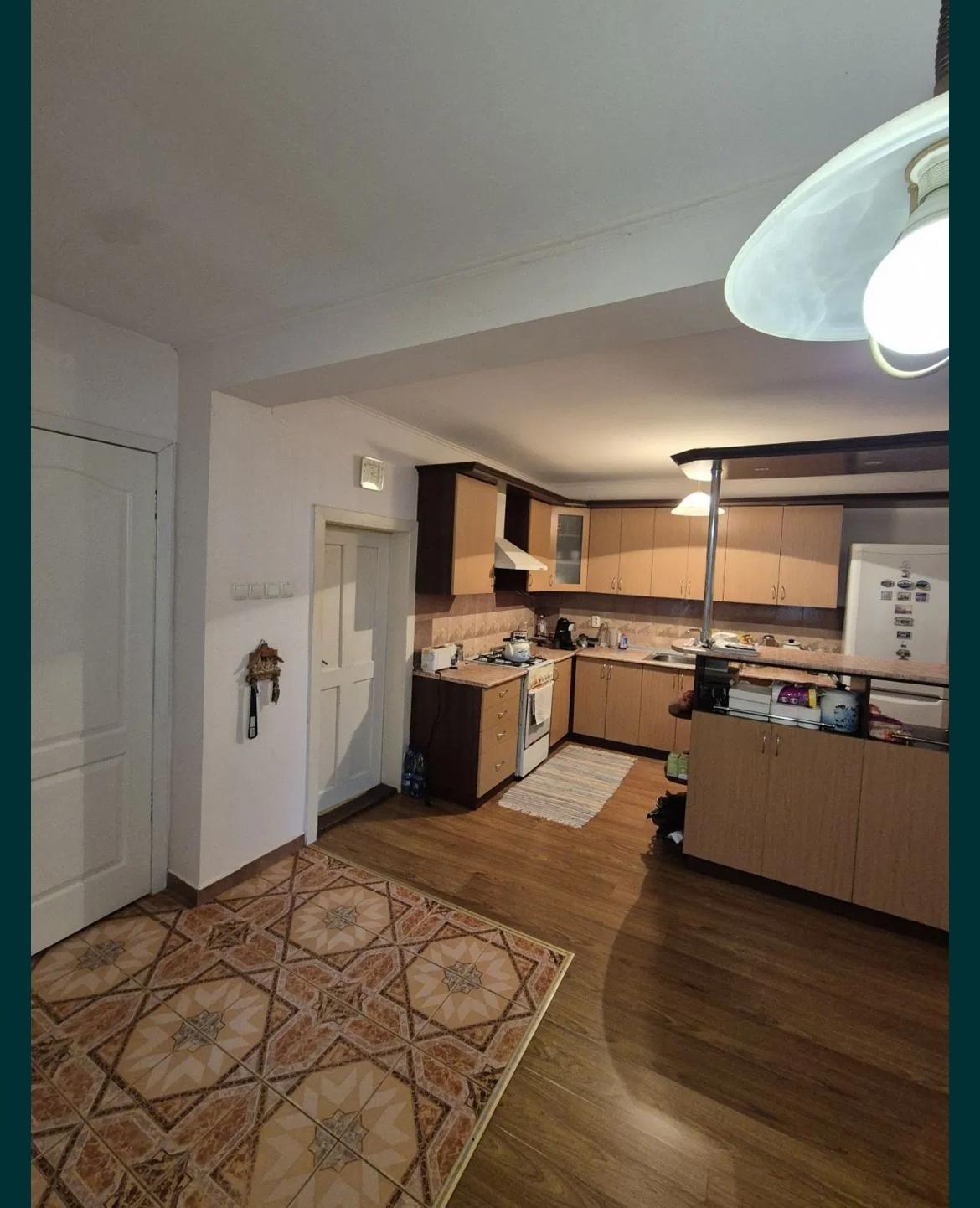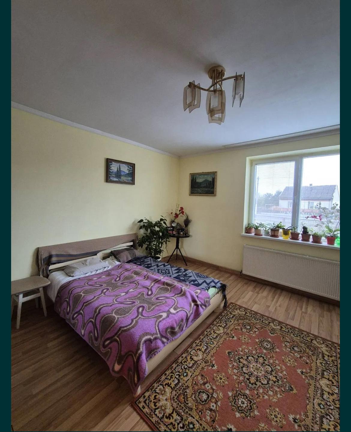 Будинок: два входи, 4 кімнати, 2 кладові, кухня, 2 санвузли, опалення газове індивідуальне, одна кафельна піч, горище, стіни - цегла/саман, металопластикові вікна, вода - колодязь та скважина, каналізація - септик, дах - етерник. Документи готові до продажу. Підлога - ламінат.