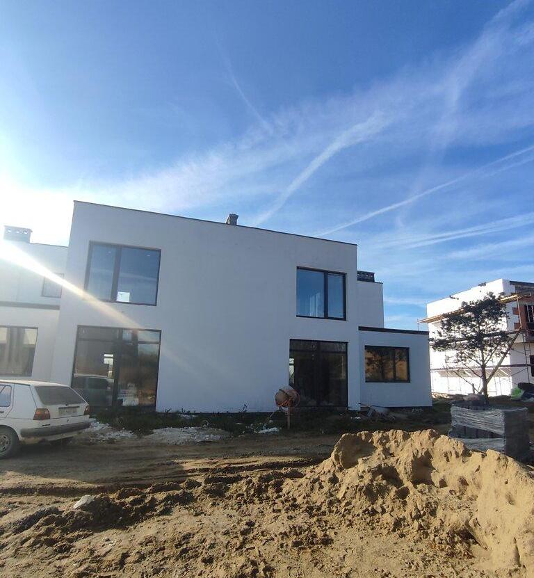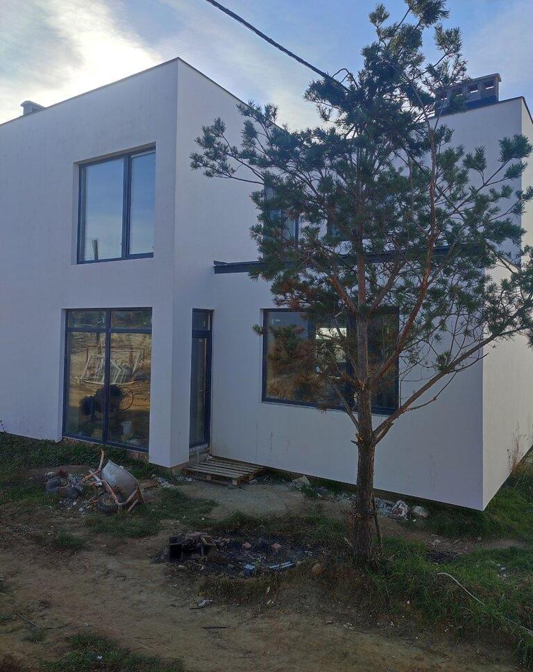 Загальна площа 152 м2, тераса ще 70 м2. Забор дороблять. Неймовірний вид на котедж і з котеджу.