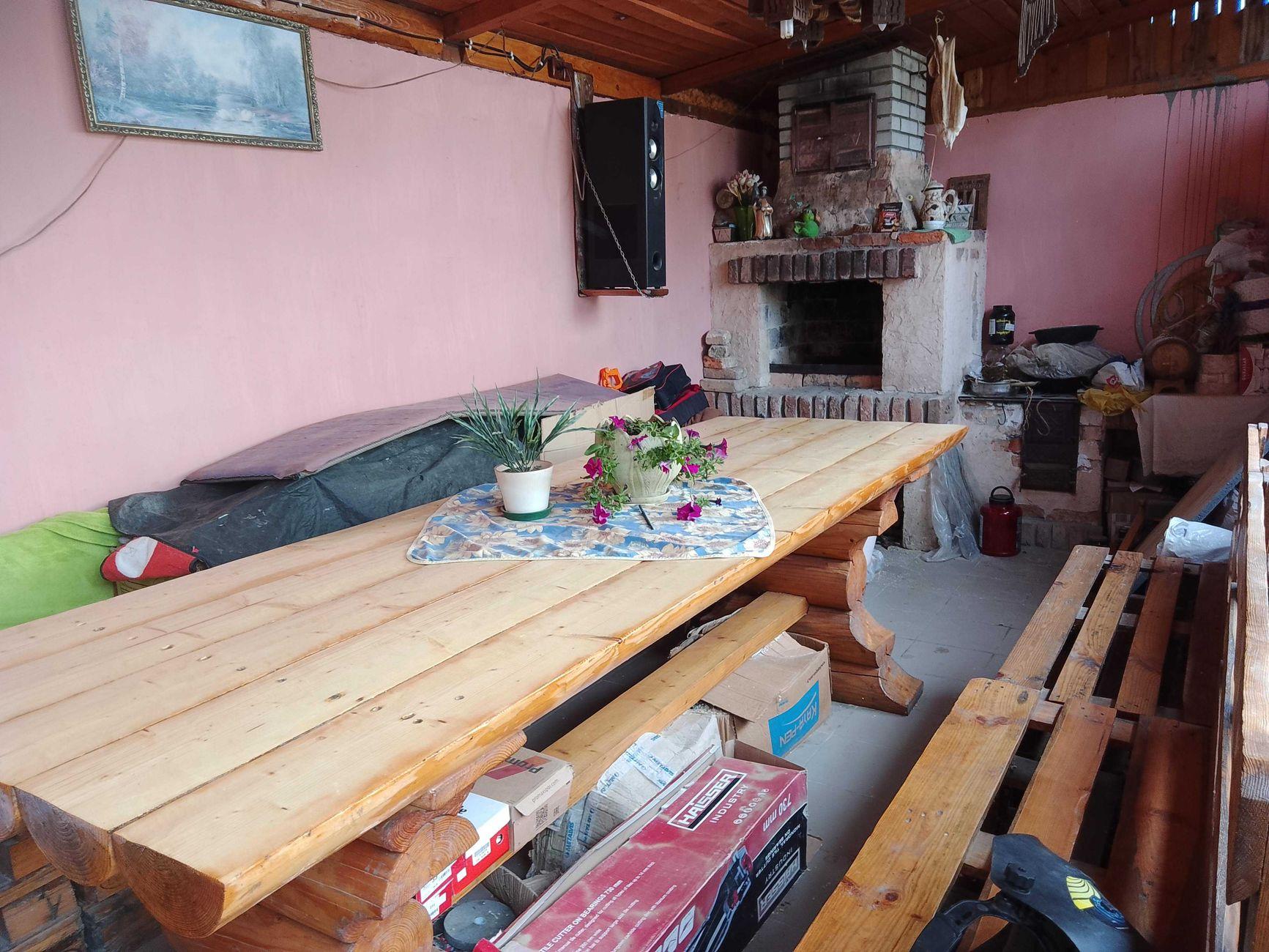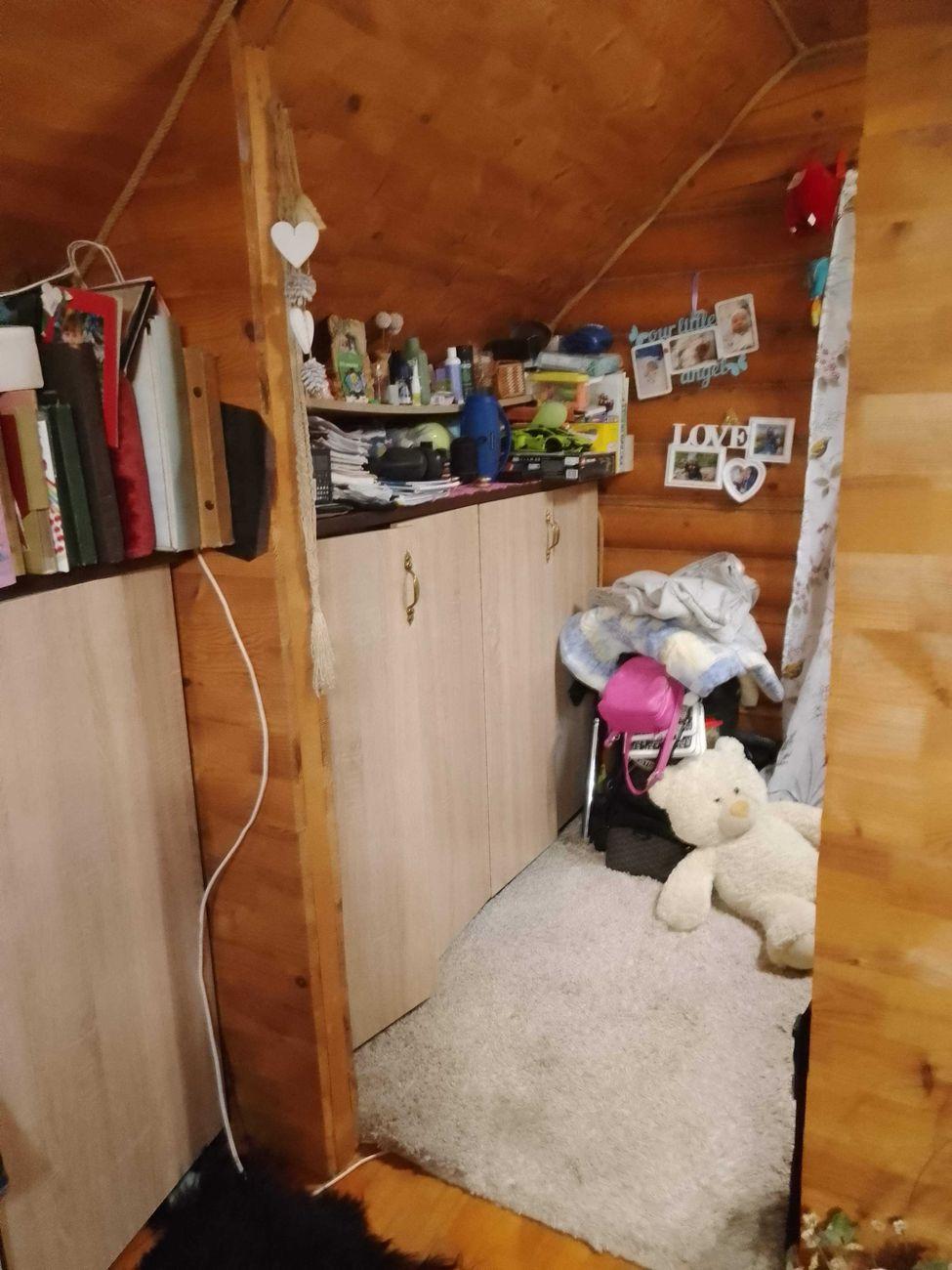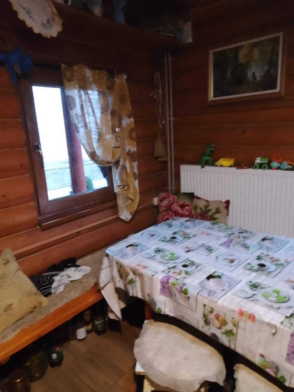 Перший будинок з зрубу. В будинку є кухня, санвузол та 2 кімнати.