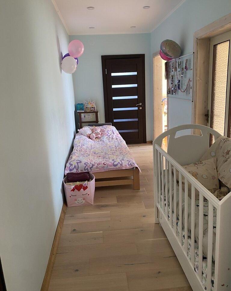 На другому хол, 2 спальні, одна вузька прохідна кімната і ванна. Є гараж з автоматичними воротами, вихід з гаража у будинок.