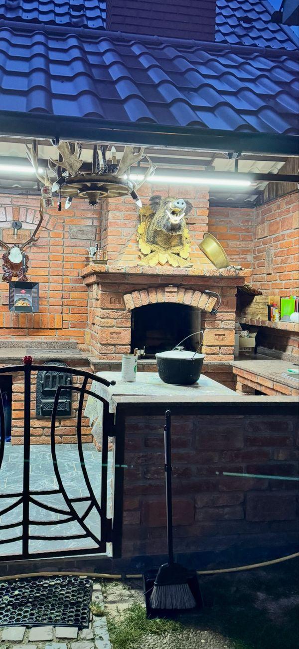 Перший поверх - хол з каміном, кухня - столова з вмонтованими мебелями та технікою. З кухні вихід на велику терасу - де можна приймати гостей., гостьова кімната, душова, туалет, котельня, гараж. Полове водяне опалення.