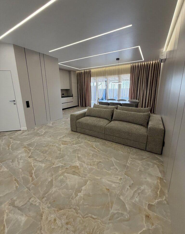 Загальна площа 122.8 м² , 4 окремі спальні і велика кухня-студія, дві гардеробні, два санвузла. Земельна ділянка - 2 сотих, тераса з внутрішнім двориком, два паркомісця.